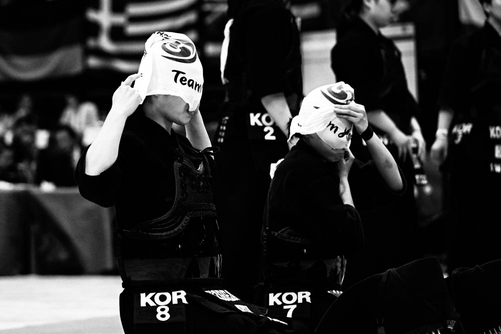 L’approccio di Domenico Pescosolido è più statuale, quasi meditativo, soffermandosi sui gesti, sugli inchini, sulle attese, sui volti assorti, mostrando ciò che avviene ai margini dell’azione: la preparazione, la compostezza, il silenzio. E’ la parte invisibile del Kendo, quella che si coltiva nella disciplina quotidiana e nella tensione interiore.